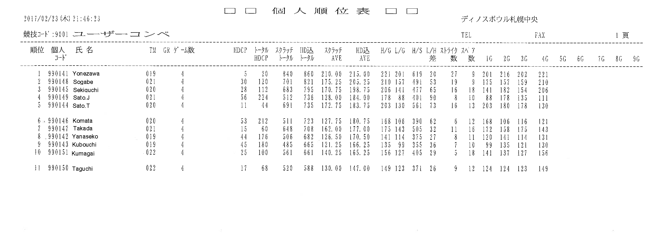 各自のペースで合計5・6ゲーム投げました。